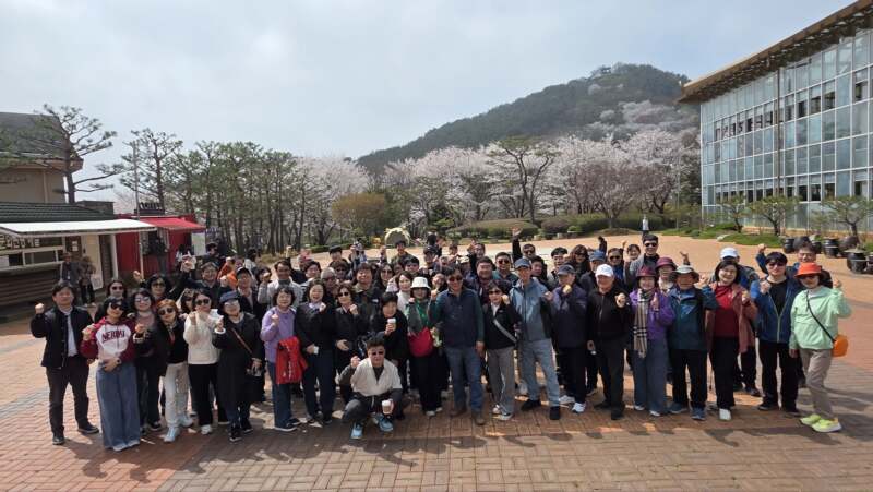 반면, 나머지 1개 조는 자유 산책을 선택했다. 따스한 봄바람을 맞으며 산 정상 전망대로 향하는 길, 길 양옆으로 벚꽃과 봄꽃들이 흐드러지게 피어 있었다. 정상에 다다르자 꽃들이 온 천지를 뒤덮은 산 아래 풍경이 한눈에 들어왔다. 그 압도적인 풍광 앞에서 회원들은 잠시 멈춰 서서 서로의 어깨를 토닥였다. “우리가 관리하는 단지도 이렇게 예쁘게 가꾸어보자”는 다짐은 그 어떤 회의보다 강력한 결속력을 만들어냈다.